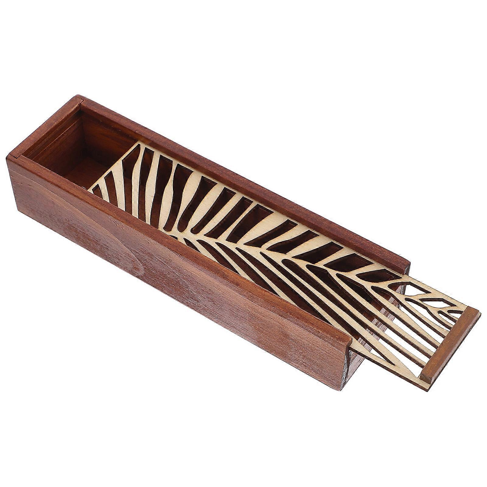 Decorative Wooden Pencil Box for Stationery Storage Brown Hollow Style
