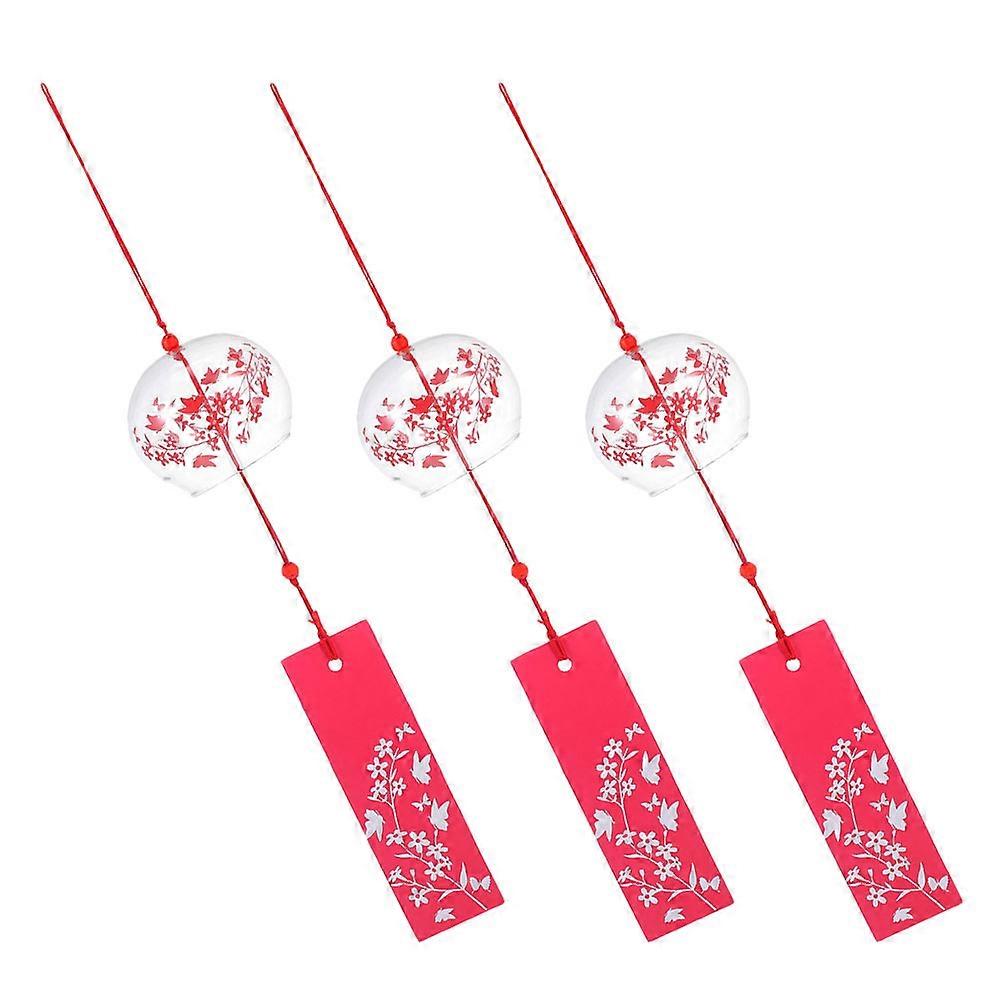 Creative Glass Wind Chime 3Pcs Red Beautiful Sound Addition High Borosilicate Glass for Home Decor