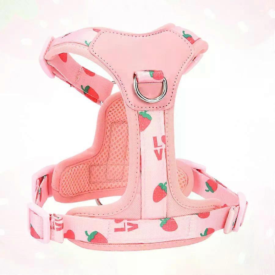 HP417--1Pc Strawberry Fruit Print Pet Dog Harness Durable Oxford Fabric and High Density Printed Ribbon 11-32 inch chest