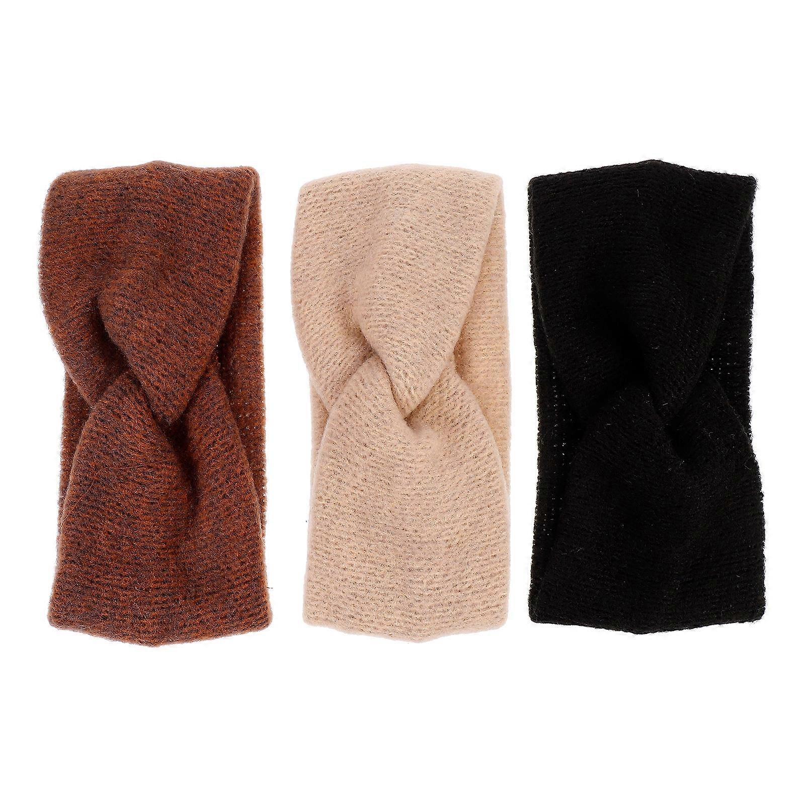 Thick Winter Headband 3Pcs Assorted Color Wool Warm Headband for Women Ears Warmth