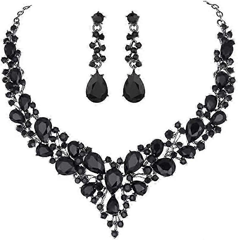 A women's wedding and bridal jewelry set, an Austrian crystal teardrop cluster statement necklace and dangle earrings set
