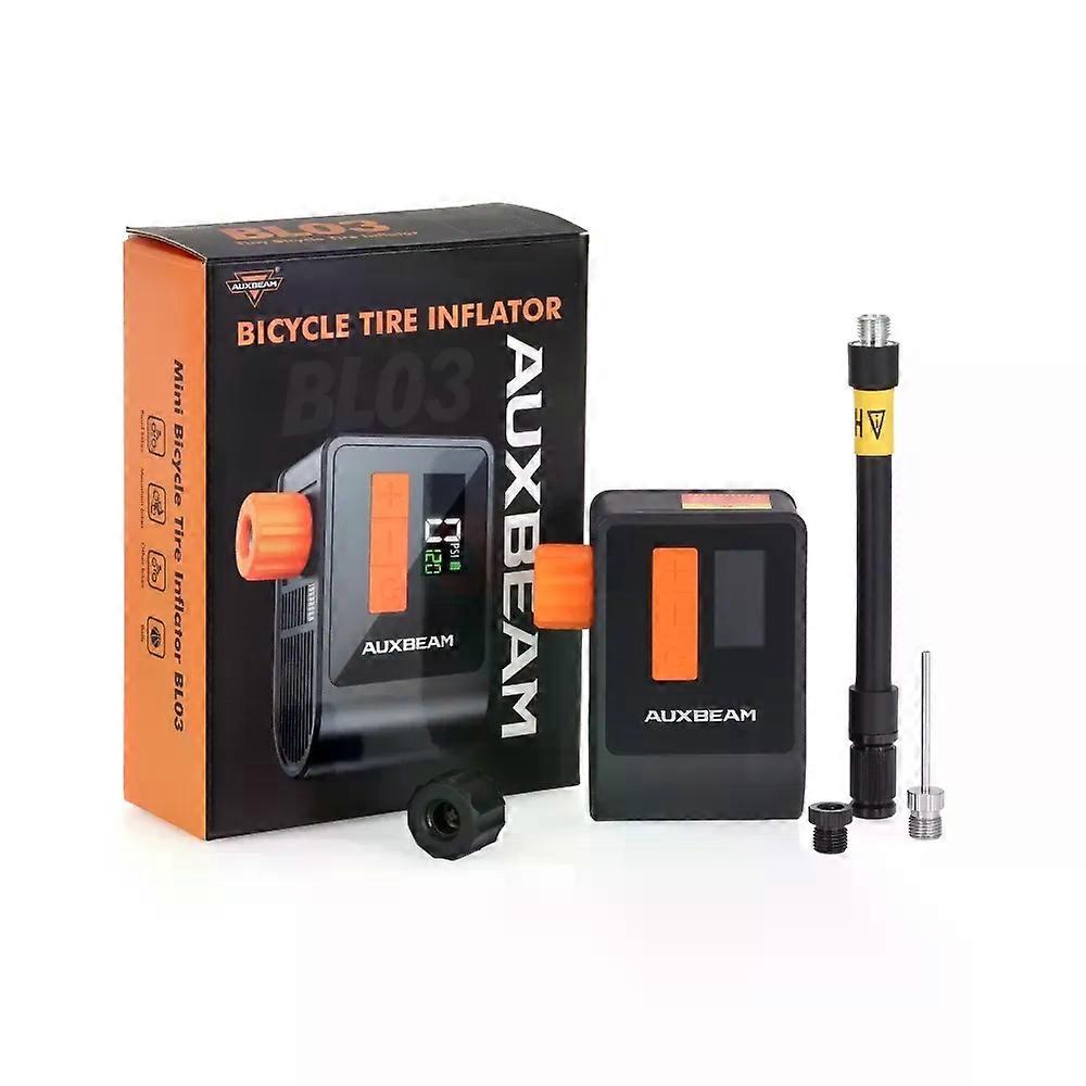 Introducing our Compact BL03 Bike Pump, the ultimate solution for cyclists who demand precision and portability. Specifically designed for road bikes, this mini pump can quickly inflate tires up to 120 PSI, ensuring your ride is always ready to go. With a 1000mAh battery, its lightweight and easy to carry, making it the perfect companion for any cycling adventure. MAIN FEATURES MAX 120PSI High-Pressure Performance Effortlessly inflates road bike tires to 120 PSI in minutes. High-speed brushless motor for road bike tires, this pump delivers up to 120 PSI, ensuring your tires are always at optimal pressure for a smooth and efficient ride. Bicycle Tire Types & Pressure Values Dual Valve Compatibility Equipped with both Presta and Schrader valves, this pump is compatible with a wide range of bicycles, from road bikes to mountain bikes. No matter what type of bike you ride, this pump has you covered. Note: A Dunlop valve is additionally provided in the package to meet the requirements of special tire valve nozzle inflation. Compact & Portable With a 1000mAh battery and a mini design, this pump is easy to carry in your backpack or attach to your bike frame. Its the perfect size for cyclists who value portability without sacrificing performance. Multi-Purpose Use Not just for bikes! The included ball needle allows you to inflate sports balls, making it a versatile tool for all your outdoor activities. It also comes with a mini LED light source. Double-click the plus button to turn the light on or off. SPECIFICATIONS Voltage: 12 Volts (DC) Power Source: Battery Powered Battery Cell Type: 2 Lithium Ion batteries Noise Level: 90 dB Maximum Pressure: 120 PSI PACKAGE INCLUDED Bicycle pump *1 Presta valve *1 Schrader valve *1 Dunlop valve *1 Ball needle *1 Flexible hose *1 Type-C charging cable *1 Storage bag *1 User manual *1