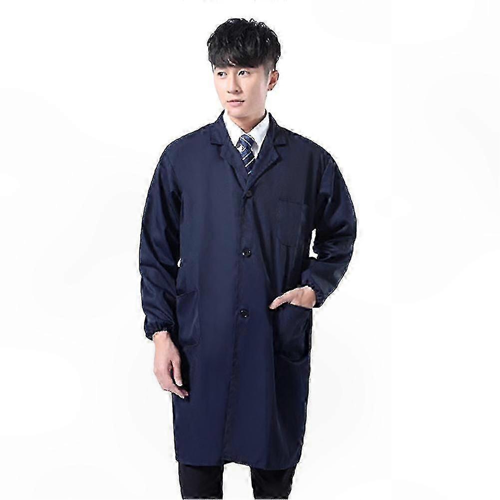 Men's Long/Short Sleeve Buttoned Lab Coat with Pockets for Warehouse Work Clothing