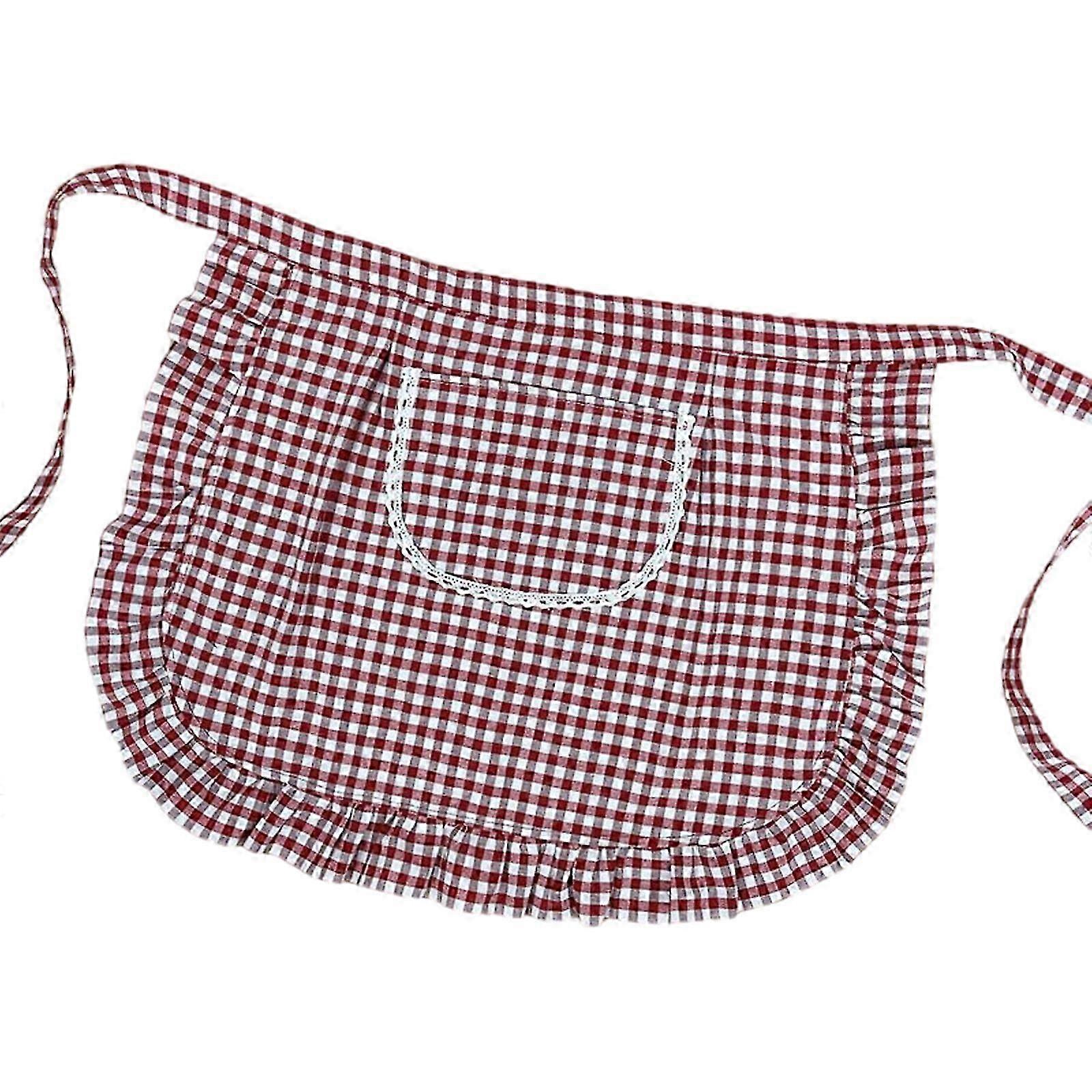 Maid Apron Ruffled Waist Apron Adjustable Women Apron Kitchen Cooking Apron Serving Apron for Kitchen Bakery Restaurant plaid red