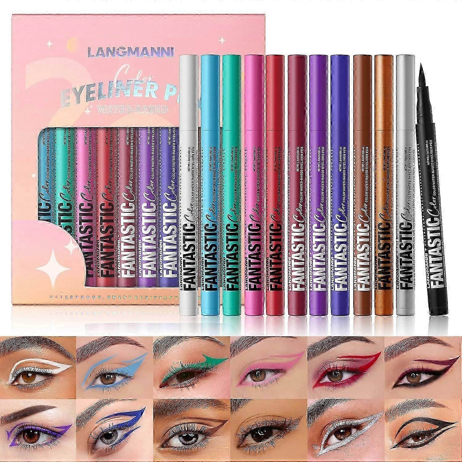 12-Colour Matte Liquid Eyeliner Set with Neon Pigments, Long-Lasting, Smudgeproof and Waterproof for Bold Eye Looks