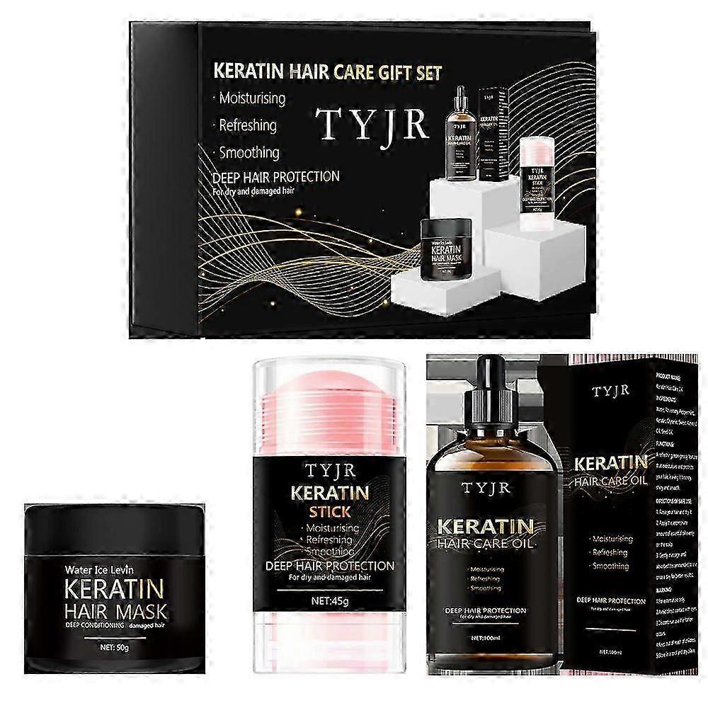 Keratin Hair Care Set with Mask, Stick, Oil, and Conditioner for Repairing Dry, Split End, and Damaged Hair