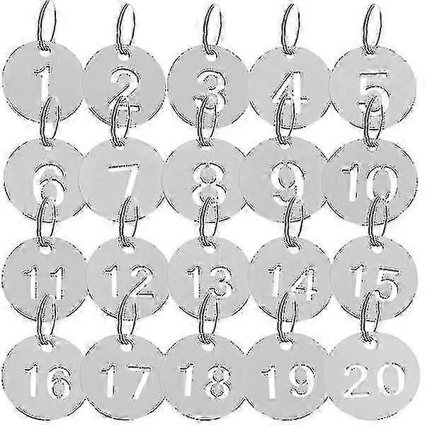 20-Piece Stainless Steel Numbered Tags 1-20 for Keys, Luggage, and ID with Durable Rust-Resistant Finish