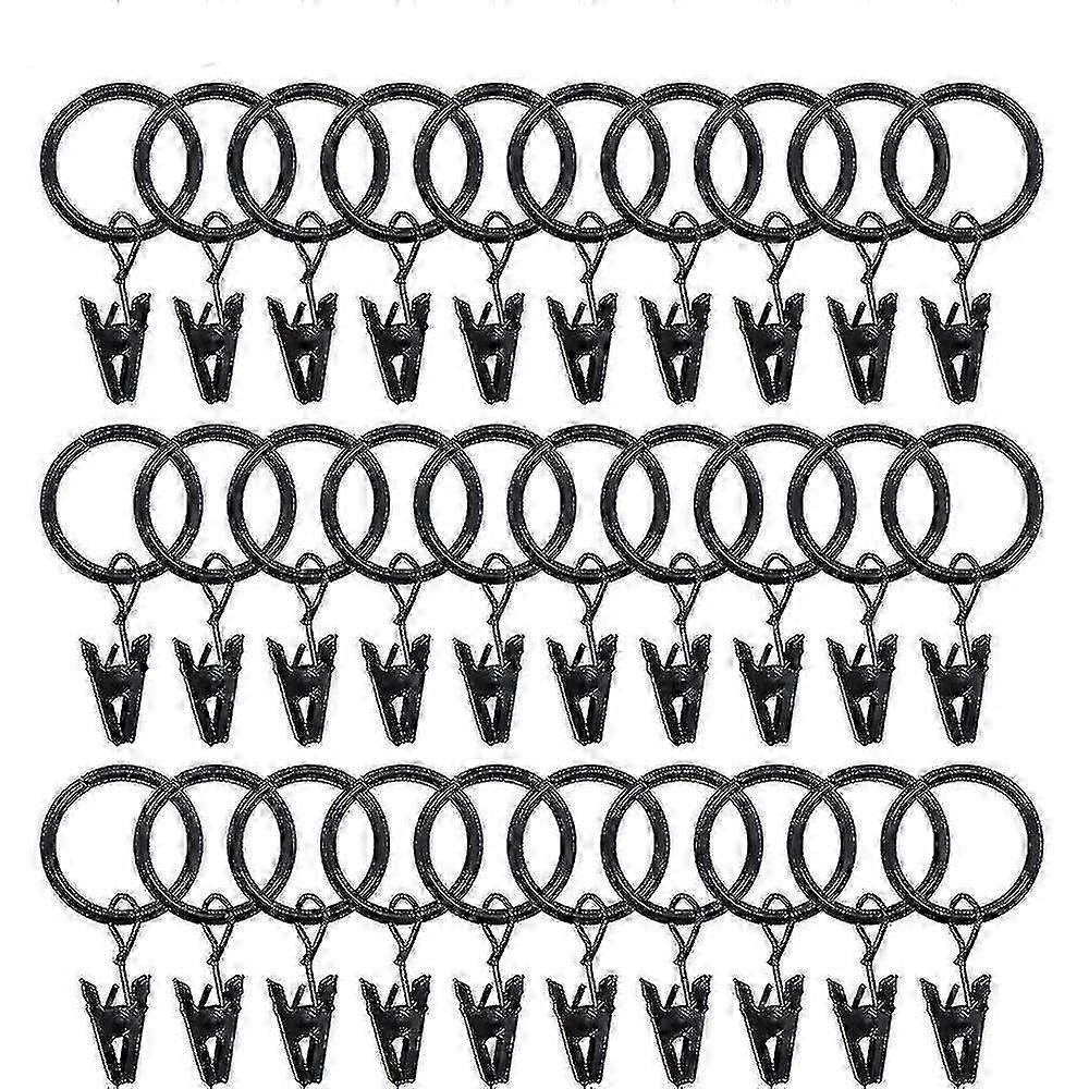 Material: Made of high-quality metal, curtain rings are polished surface without burrs, not easy to fade, are rust-proof, wear-resistant.Includes: 30 curtain rings clips, inner diameter: approx. 2.5 cm / 0.98 inches.Colour: black. Good workman: Has a robust spring tension, not only stable, it can also not tear or scratch the curtain.Easy to use: These curtain rings glide smoothly on your curtain rod, slide the ring through the rod and clamp the curtain with a clip, or you can remove the clip and use the rings alone.Wide range of uses: Suitable for most curtain poles and clips, bed curtains, craft supplies.