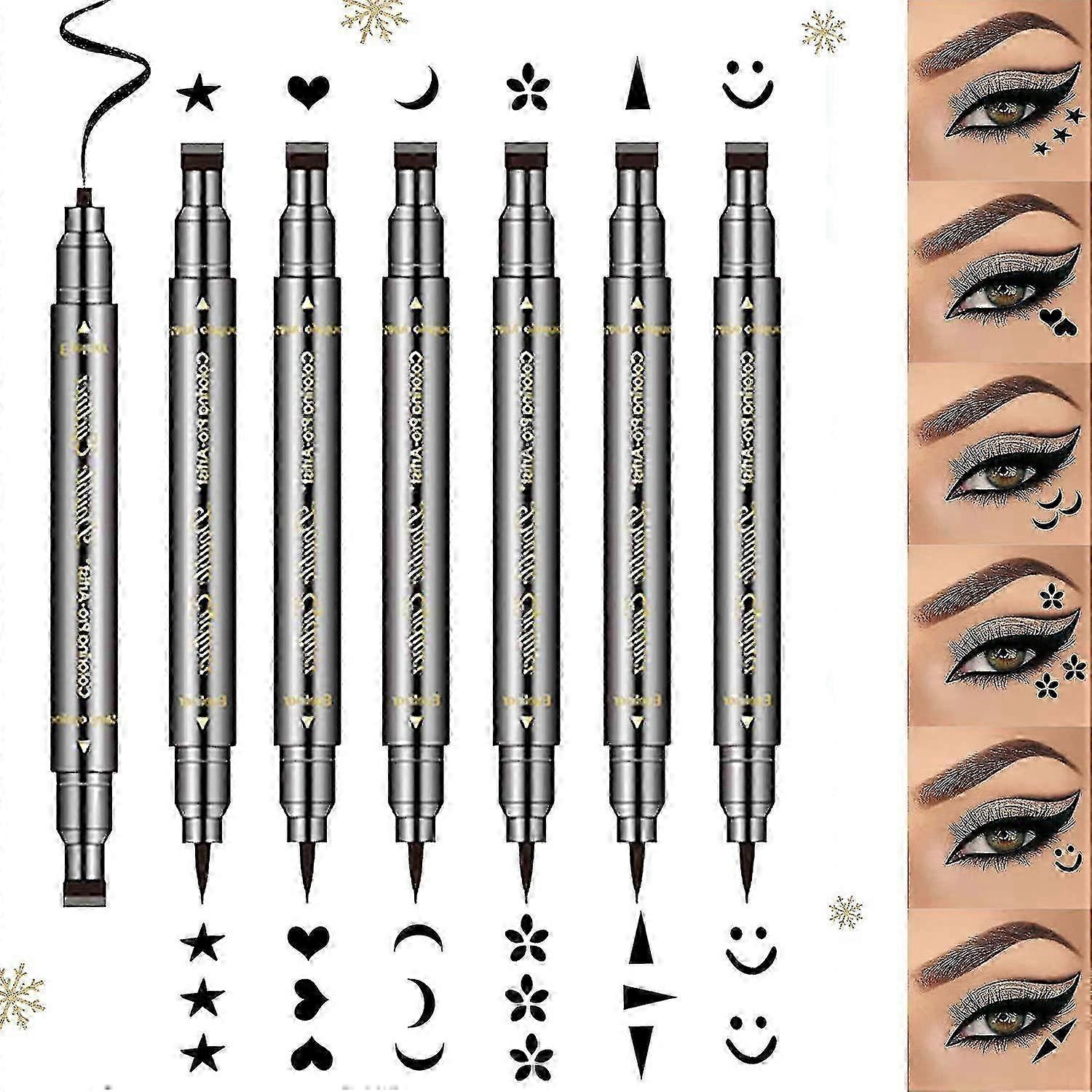 6-Piece Waterproof Liquid Eyeliner Set with Double-Sided Stamps in Smiley, Triangle, and Heart Shapes