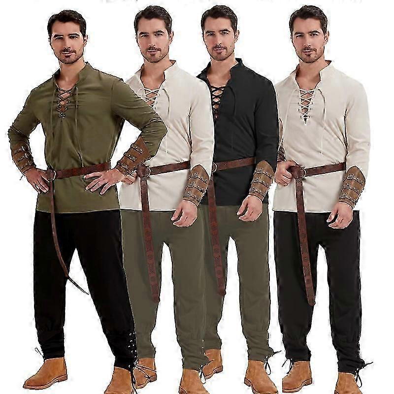 Xin Renaissance Costume For Men Medieval Pirate Shirt Ankle Tie Pants Cotton Linen Blend Halloween Cosplay Outfit