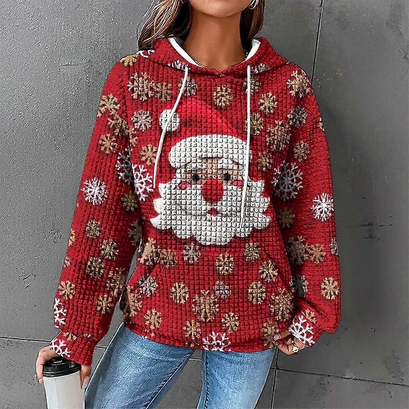 Christmas Waffle Knit Women's Hooded Sweatshirt Fleece Lined Warm Pullover