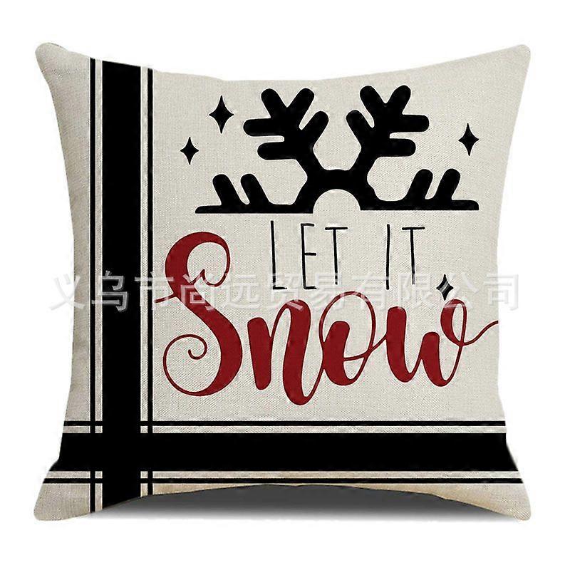 Christmas Print Linen Pillow Cover Holiday Decorative Home Accent Breathable Cushion Case
