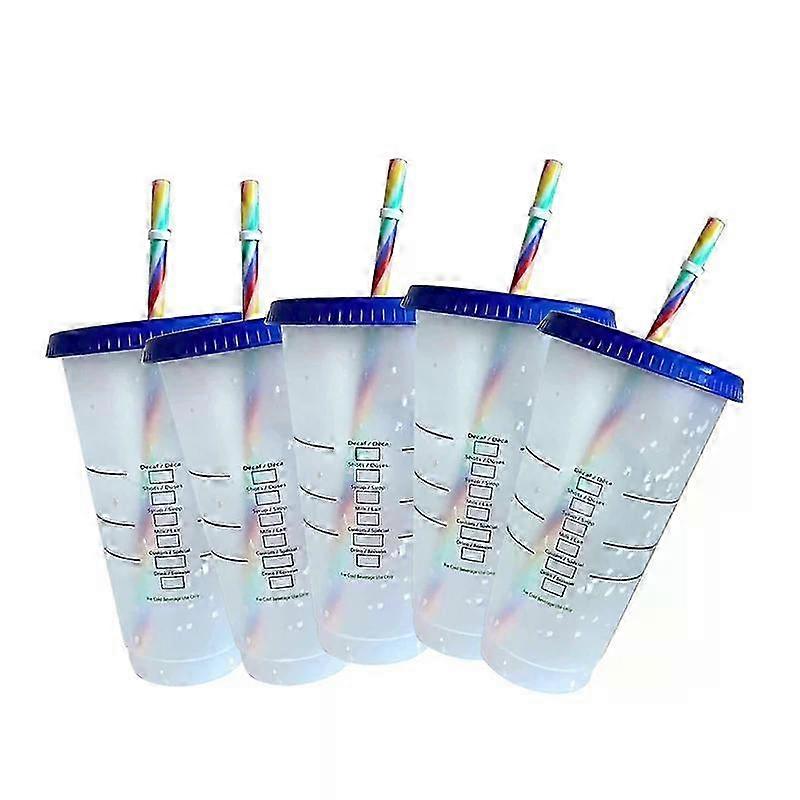 5pcs Tumbler With Straw Plastic Coffee Cup Bpa Free Creative Straw Cup With Logo Change Color Water Bottle 710ml Coffee Tumblers