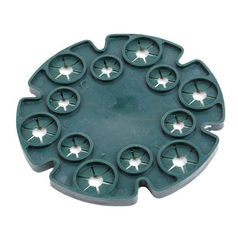 Quantity: 6 piecesColor: GreenMaterial: PEMaximum diameter: 13.5 cmSupports up to 12 canes, 6 (2.4 cm diameter) + 6 (1.9 cm diameter). Suitable for different sizes of bamboo and rattan.Simply push the canes through the handles and push them into the ground to create a stable growing frame.Bamboo can be used to support beans, sweet peas, tomatoes, cucumbers and other types of climbing plants.Each plastic disc evenly defines 12 holes without trying to determine the distance between posts.