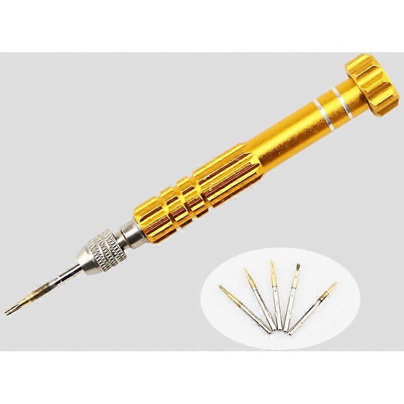 5-in-1 Multifunctional Precision Small Magnetic Pocket Screwdriver for Eyeglasses, Smartphones, Tablets, Watches, Repair Tool Kits, Gold