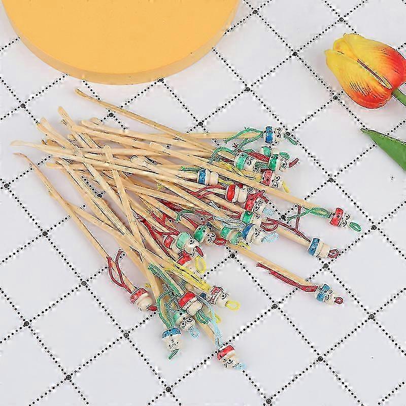 A 10pcs set of a mini doll and wood bamboo ear pick, a wax remover cleaner and ear care tool.