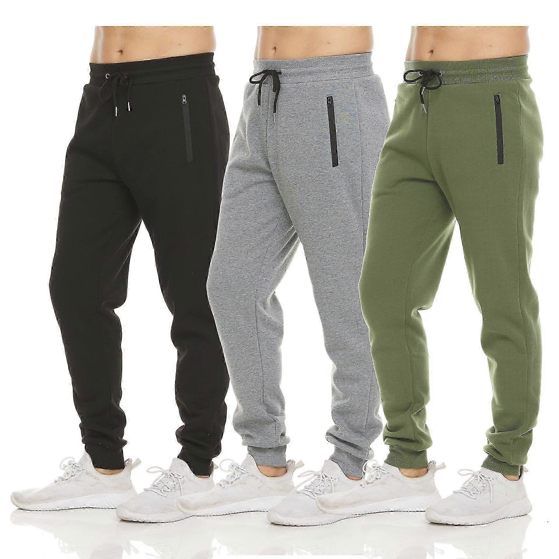 Mens 3 Pack Fleece Active Athletic Workout Jogger Sweatpants ZKFN