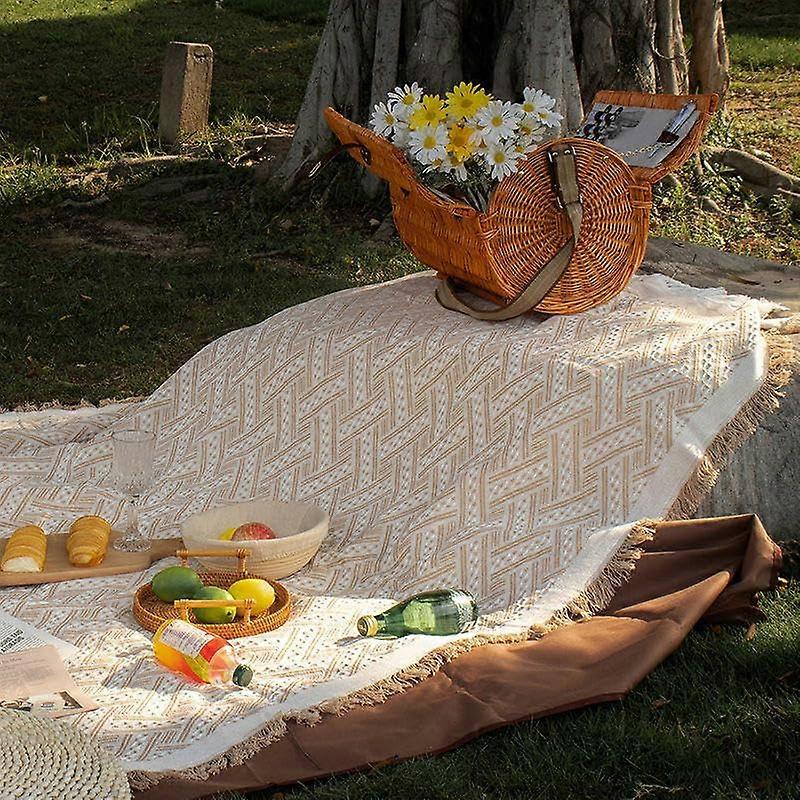 90 * 90cm/180 * 300cm Retro Camping Blanket, Travel Outdoor, Lightweight Cozy, White Coffee TGrid