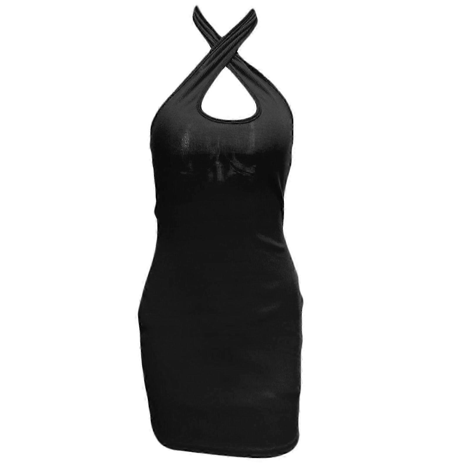 Summer Backless Mini Dress for Women - Halter Neck Sleeveless Bodycon Ribbed Knit Club Party Wear Criss Cross Design