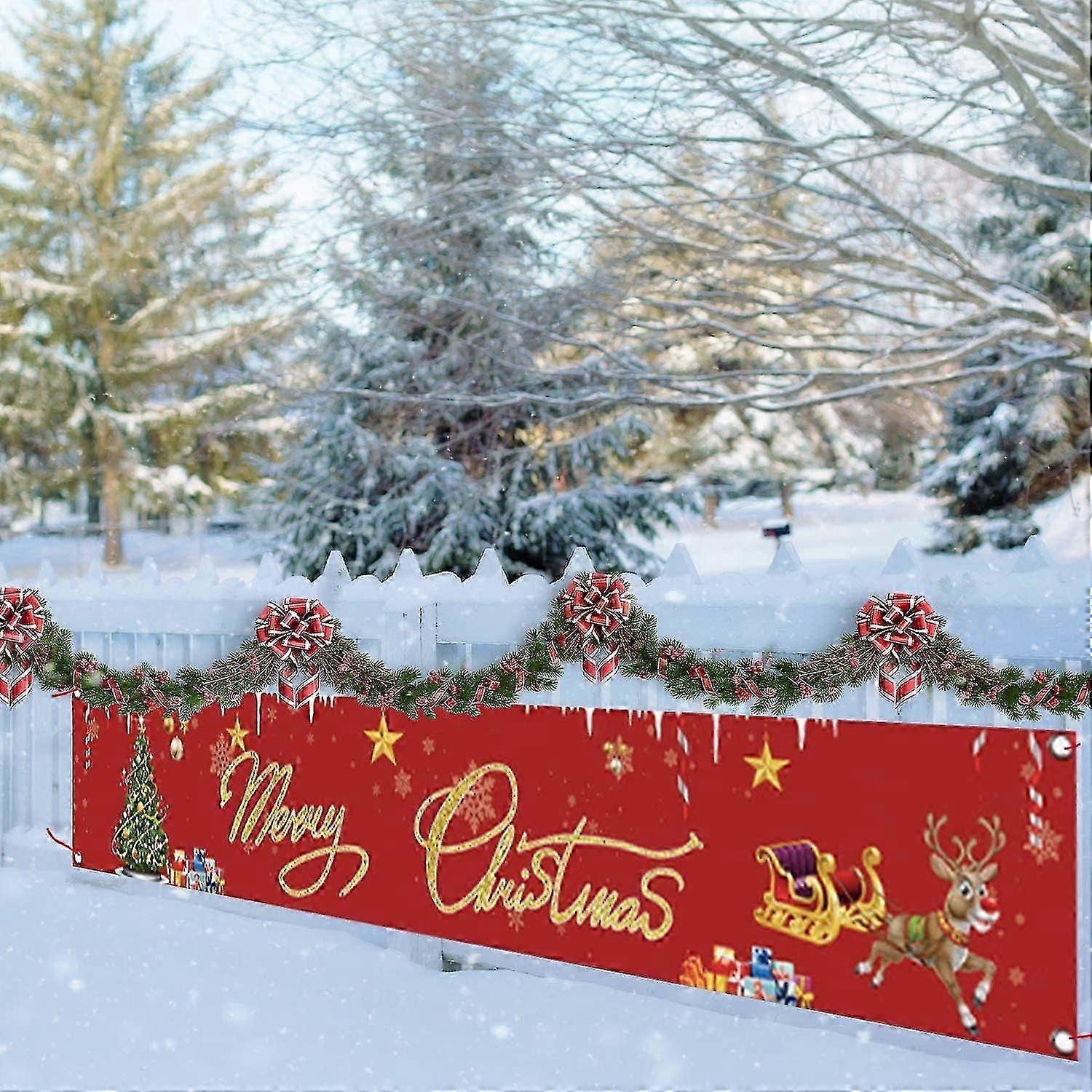 Large Red Buffalo Plaid Merry Christmas Banner with Snowman and Tree - UK Festive Wall Sign