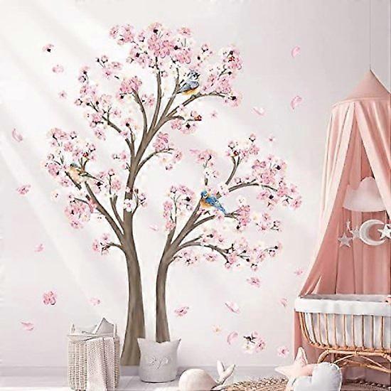 PolkaHome Large Cherry Blossom Tree Wall Sticker - Pink Flower Branch Wall Decoration for Bedroom, Living Room and Children's Room (Height: 151cm)