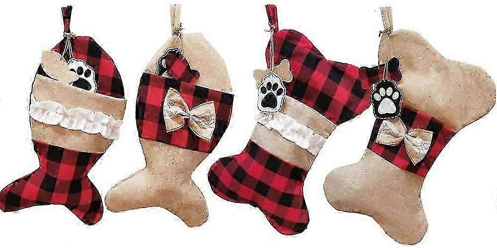 Set of 4 Burlap Plaid Christmas Stockings for Pets, Ideal Holiday Hanging Decor for UK Pet Lovers