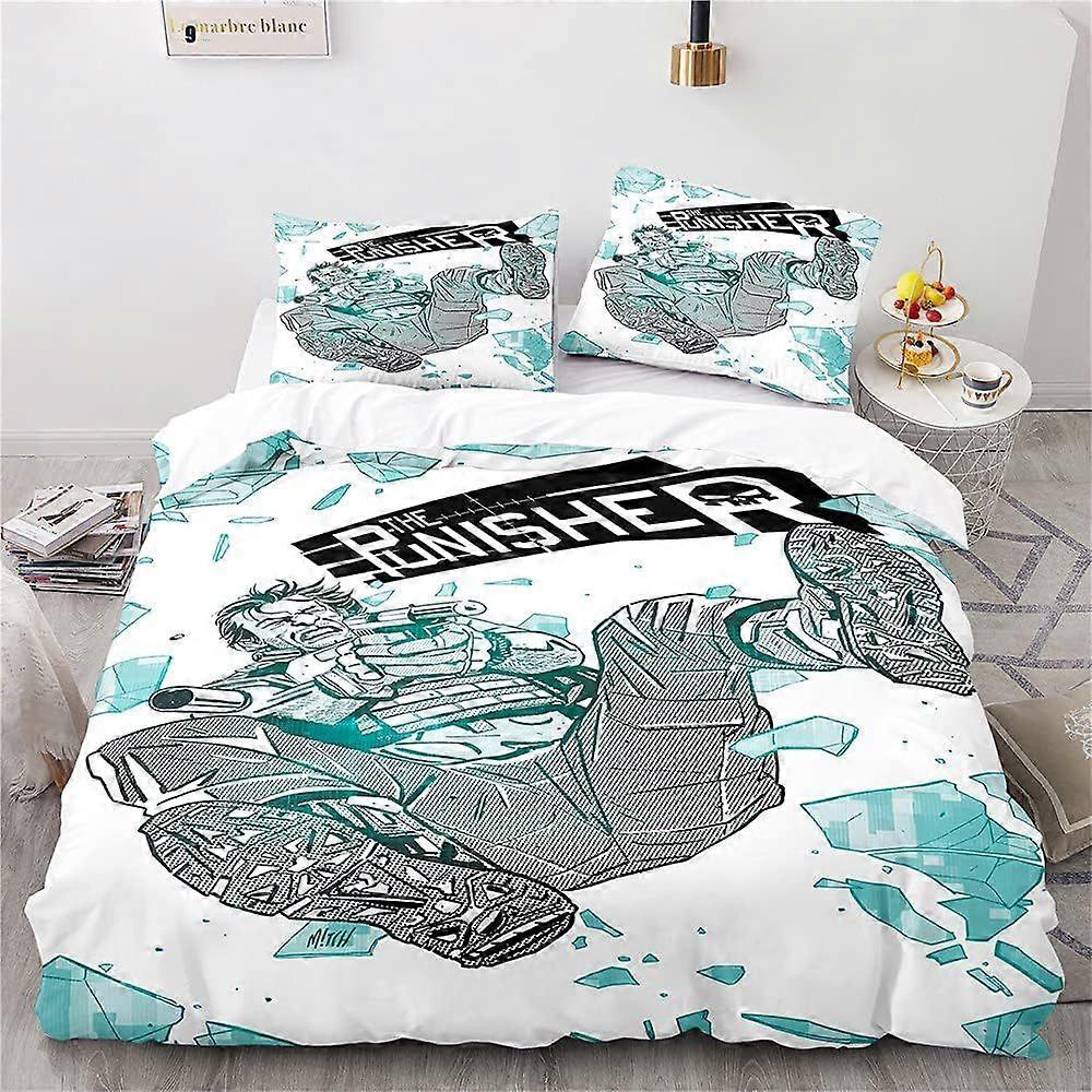 y655 Frank Castle Duvet Cover Bedding Set - Duvet Cover and Pillowcase Microfibre 3D Digital Print Three-Piece Bed Linen u655