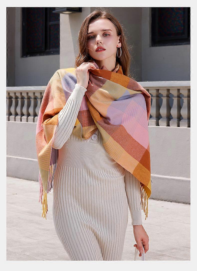 Winter Scarf for Women Shawl Cashmere Feel Tassel Plaid Large Oversized Scarves Wraps Warm Thickened Neck Warmer