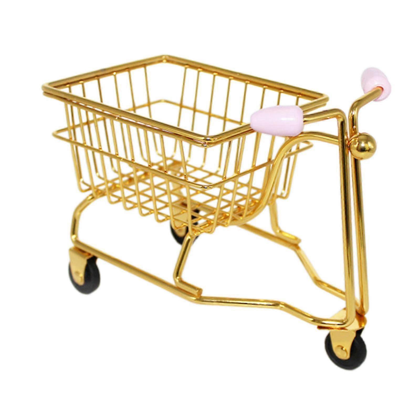 2025 Miniature Shopping Cart Toy Trolley Model Fun Mini Storage Basket Girls Gift argent and pink