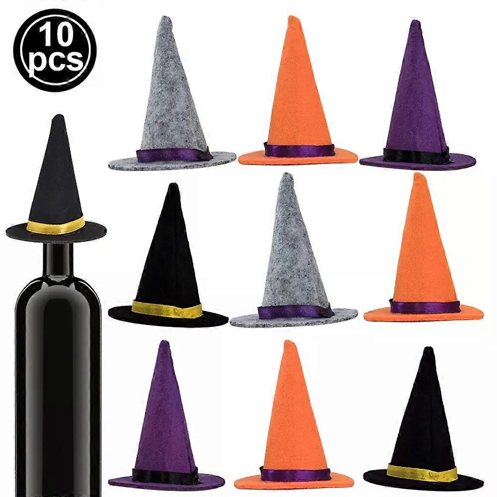 unique Mini Felt Witch Hats Halloween Party Hats Cake Topper Decors Mini Hatswith Ribbon for Halloween Party Favors DIY Crafts Supplies