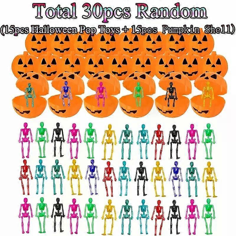 unique 30Pcs/set Halloween Plastic Pumpkin Box with Stretchy Skeleton Toys Halloween Party Kids Favors Trick or Treat Goodie Bag Filler