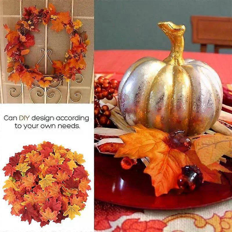 unique 50/200Pcs Artificial Maple Leaves Autumn Silk Fall Leaf For Thanksgiving Halloween Christmas Home Decoration Wedding Party Craft