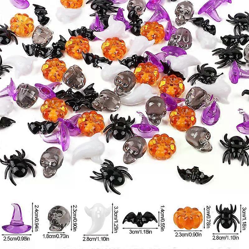 unique 50/100Pcs Halloween Mini Acrylic Ornaments Skull Head Witch Hat Pumpkin Table Scatter for Halloween Party Home Decoration Crafts