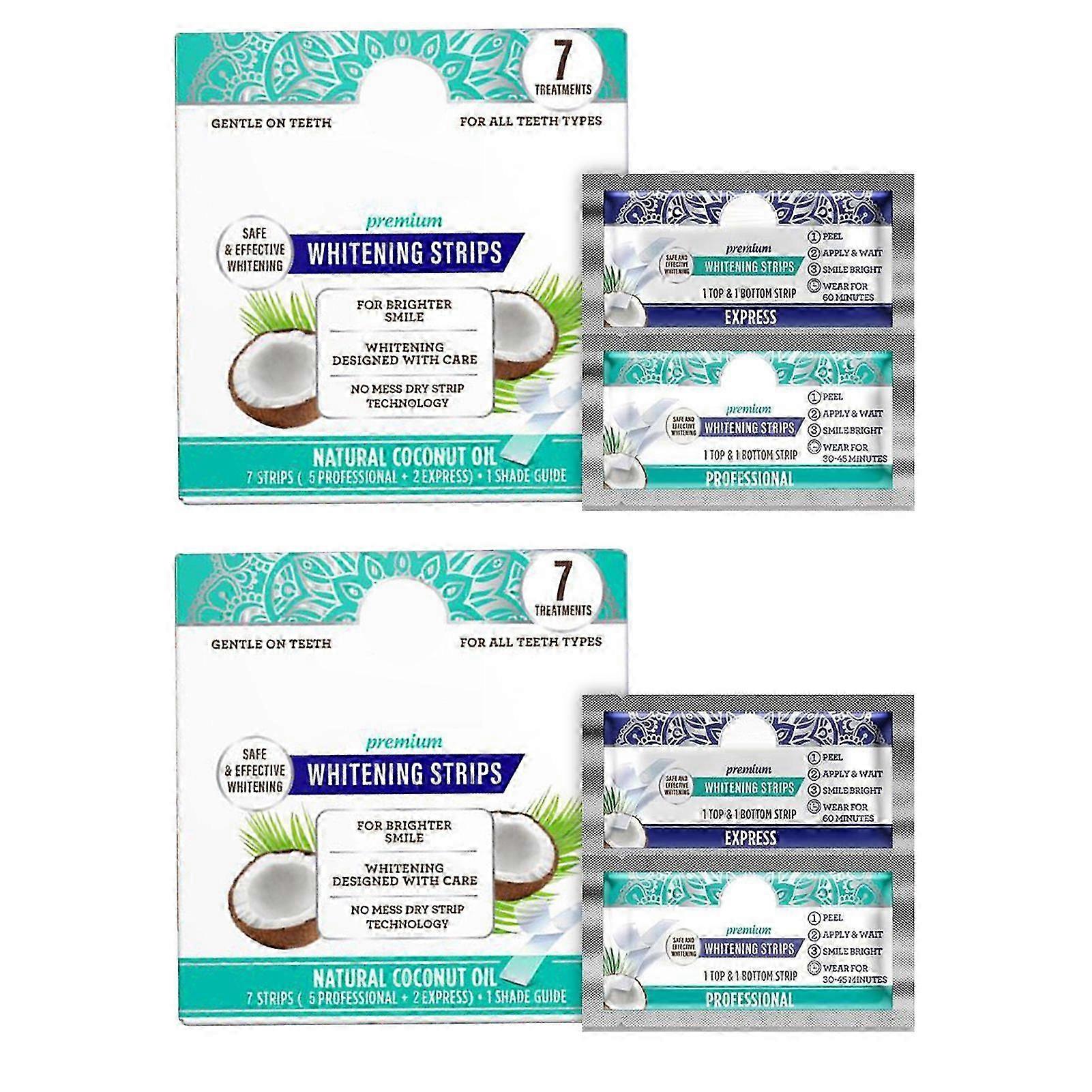 Features:<br>Good for Sensitive Teeth:Infused with natural coconuts oil, Coconut Teeth Whitening Strips are a great solution for teeth whitening for sensitive teeth and gums. The pure coconut oil in our strip-soothing touch minimizes sensitivity, ensuring a gentle whitening experience.<br>No Mess Strip Technology: Each of our strips can stay on firmly for up to 2 hours without falling or shifting. It can even withstand drinking water or exercising. It is advisable to not smoke, sleep, eat, or drink (anything other than water) while using the strips.<br>Professional Whitening: Our strips are so easy to apply, you can apply them at home, in the office, while traveling, anytime, and anywhere.<br>Hard Stains Removal: Our strips help to remove tough stains from coffee, wine, smoking, and more for a brighter and whiter smile. All result times vary from person to person.<br>.Notice:<br>Actual color may be slightly different from the image due to different light effect<br>Please allow 1-3cm deviation due to manual measurement<br> <br>Description:<br>Quantity: 7pcs Each Box<br><br>Package List:<br>1/2/3 Boxes Tooth Whitening Strips <br><br>