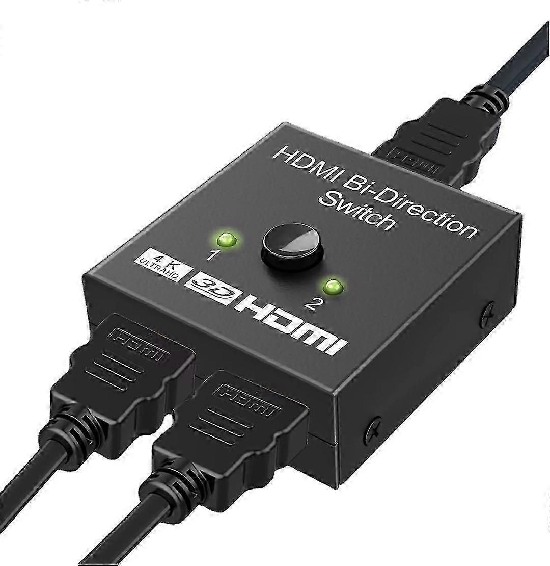 Newest HDMI Splitter SwitchExpansion monitor and TV hdmi port and avoid damage your display ports due to frequent plug. HDMI switch work as 2 in 1 out could connect two HDMI sources to one HDMI display. Work as HDMI splitter 1 in 2 out could connect one HDMI source to two displays (only one monitor will display).Broad Compatibility HDMI Switch works with most devices fitted with a standard HDMI port. Support all HDMI standard sources such as Fire TV Stick,Nintendo Switch,Laptop,PC,PS5,PS3, PS4, RUKU,X-BOX,Blu-ray, DVD player, Apple TV, TV Box etc; Output to HDMI standard display such as Monitor, HDTV, Projectors and so on.Fast & Stable TransmissionWith gold-plated interface, this HDMI switch provides high bandwidth 3.4 Gbps data transmission, support AWG26 HDMI standard cable, both input and output length could reach up to 5m. NO LAG, NO FLASH, NO LOSS of picture or sound quality.Plug & Play No external driver and power needed, this HDMI switch will work once plugged in, and the LED indicators will tell you which port is active.All Products From Us Have Undergone Strict Quality Checks.If There Is Any Quality Problem Or You Are Not Satisfied With The ProductContact Us.We Will Give You The Best Solution.