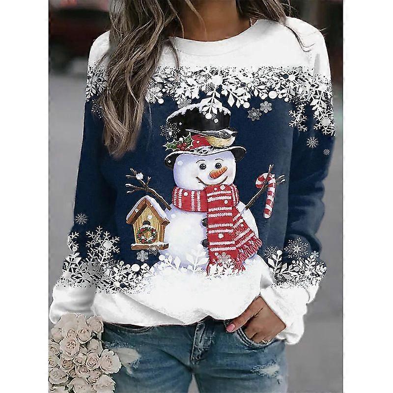 Christmas Snowman 3D Digital Print Hooded Sweatshirt Round Neck Women's Casual Hoodie