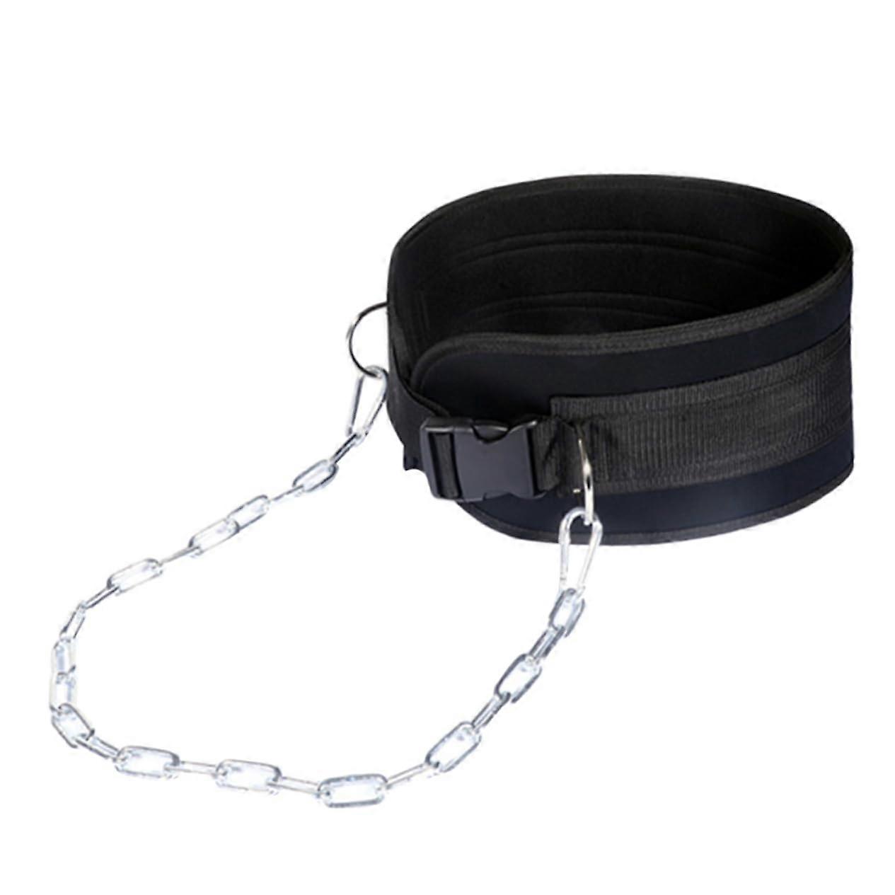 Adjustable Back Support Belt Weight Bearing Iron Chain Strap Durable Lumbar Brace Strength Training Black