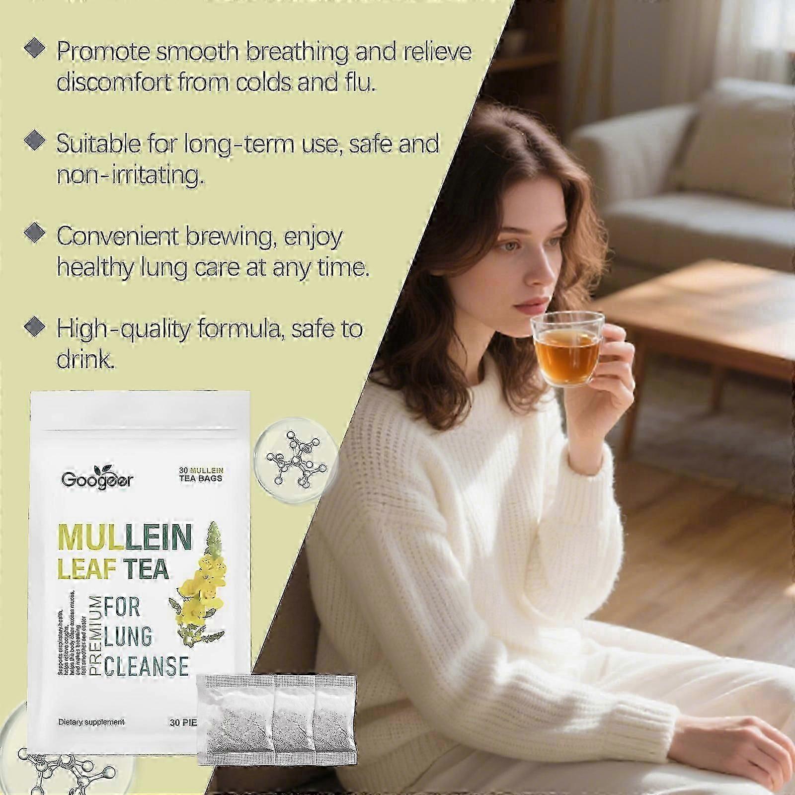 Mullein Leaf Herbal Tea - Natural Lung Cleansing Blend for Breathing Support and Cough Relief, 30 Bags