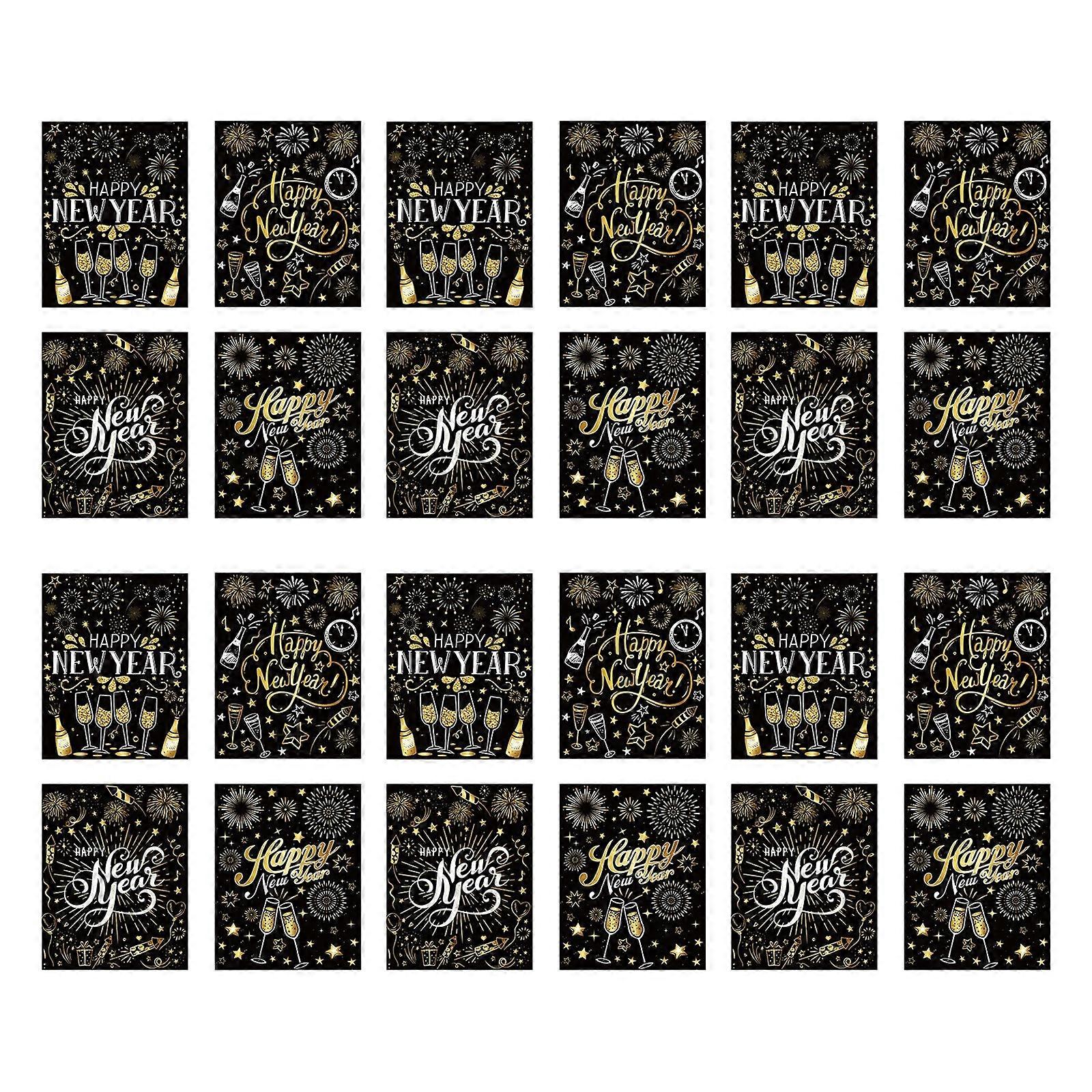 24Pcs Happy New Year Wine Bottle Labels Waterproof Bottle Wrapping Sticker For Wine Champagne Holiday Party Decoration Multicolor