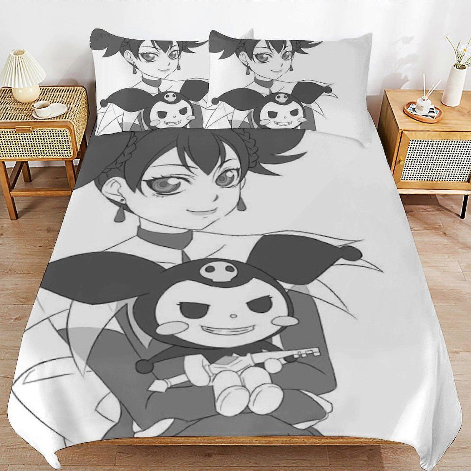 D574 Kuromi Durable Stitch Pattern Rest Comfort Feel Breathable Zip Fabric Duvet Cover Sets Nightly S574