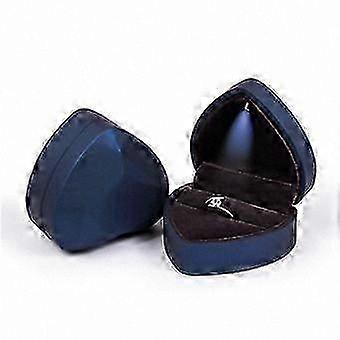 Velvet Heart-Shaped Jewelry Box with LED Light for Engagement and Proposal - Black