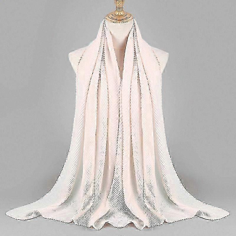 Stylish Twill Pleated Scarf, Cotton Linen Blend Headscarf for Women, Emed Design Fashion Accessory