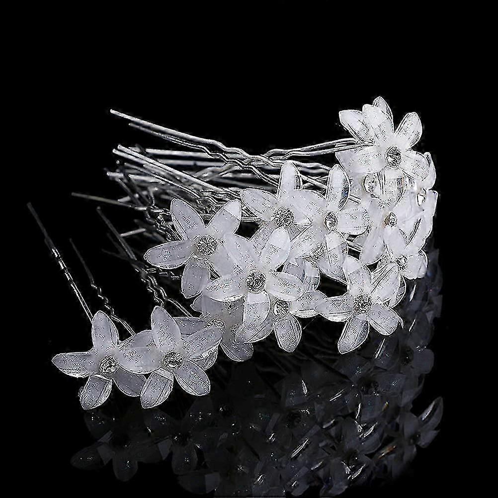 20-Piece White Flower Rhinestone Hair Pins for Bridal Weddings and Women's Hair Accessories
