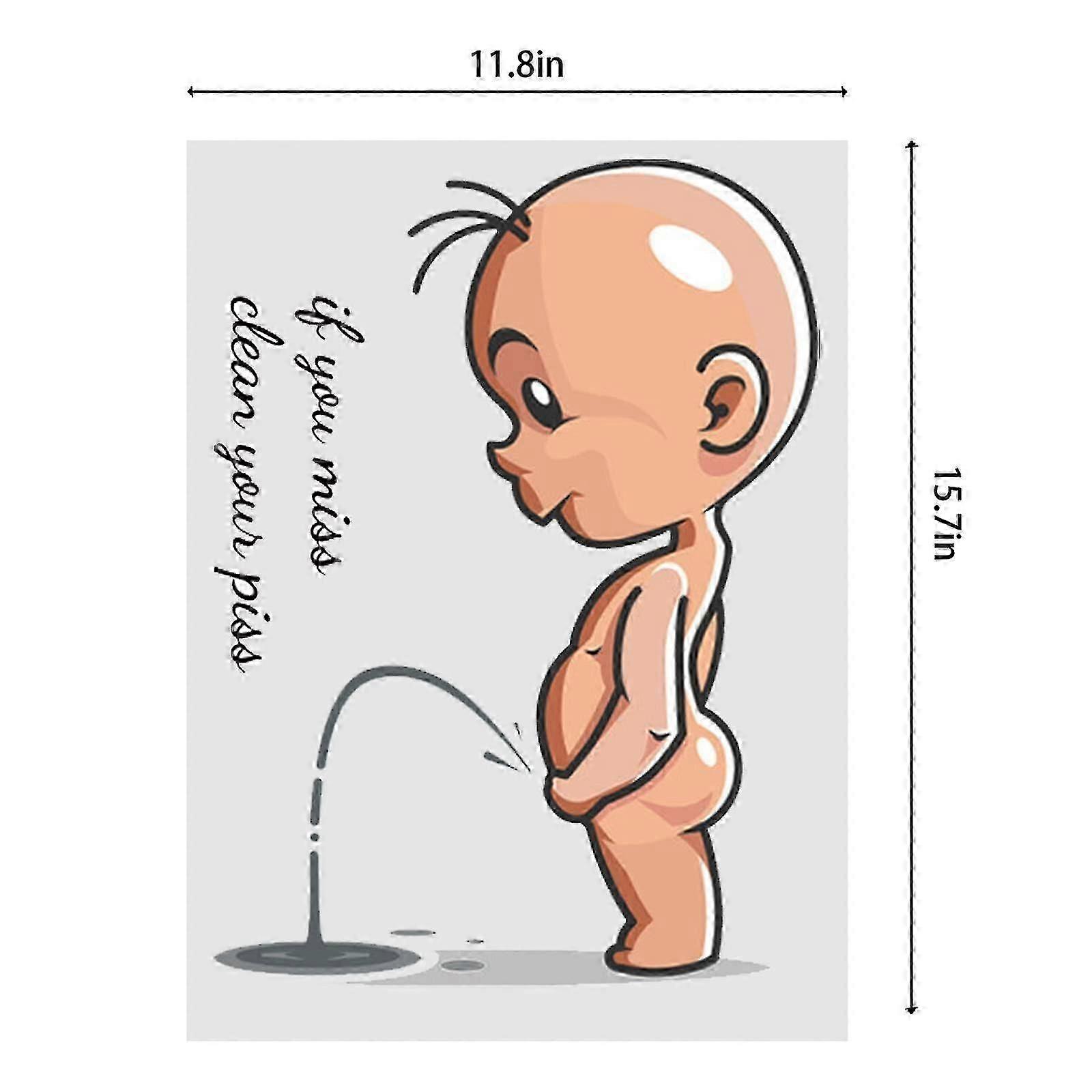 Funny PatternThe toilet seat quote murals, which is designed with sayings and a cartoon villain, will be a good reminder which tell you and your family, especially your kids not to forget to clean his piss. Also it will bring your toilet a new look.Easy to UseThis peel-off vinyl decal is easy to remove with no residue left behind. Our self-adhesive, stickers are waterproof, durable and will last for years without peeling, wrinkling or fading.Superior MaterialToilet sticker is made of Superior PVC environmentally friendly material.Package Includes1 vinyl wall stickers. Each one's size is 11.8 x 15.7 inch, you can DIY according to your preferences and imagination to make the washroom warm.Wide ApplicationAs a perfect toilet decoration, it can be used on any smooth, dry and clean surfaces like toilet, bathroom, restroom, lavatory, washroom, washstand, bathtub, WC doors, glass windows, baby boys room.