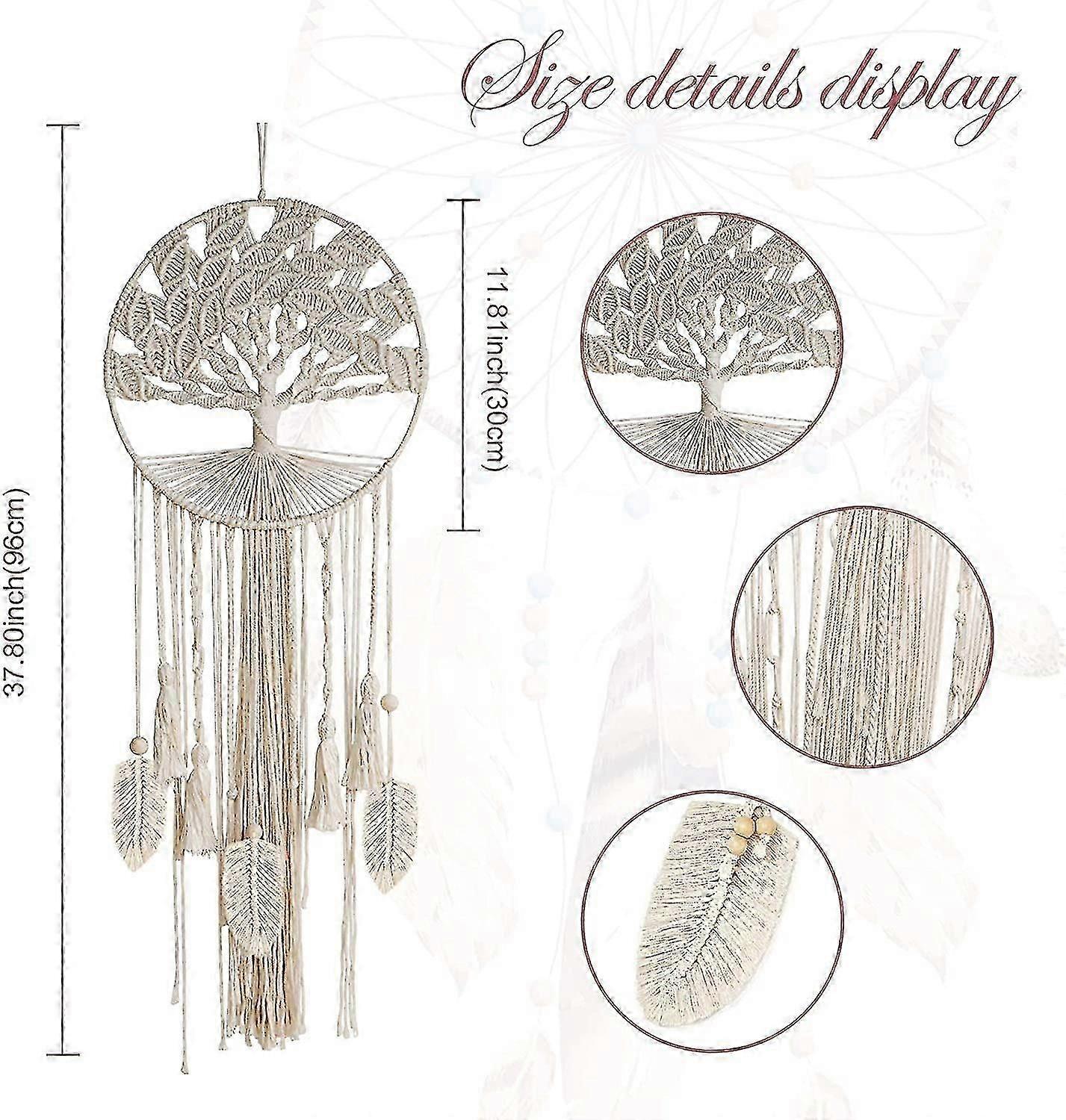 Large Tree of Life Dream Catcher Wall Hanging with Feathers and Leaves for Boho Home, Bedroom, or Nursery Decor