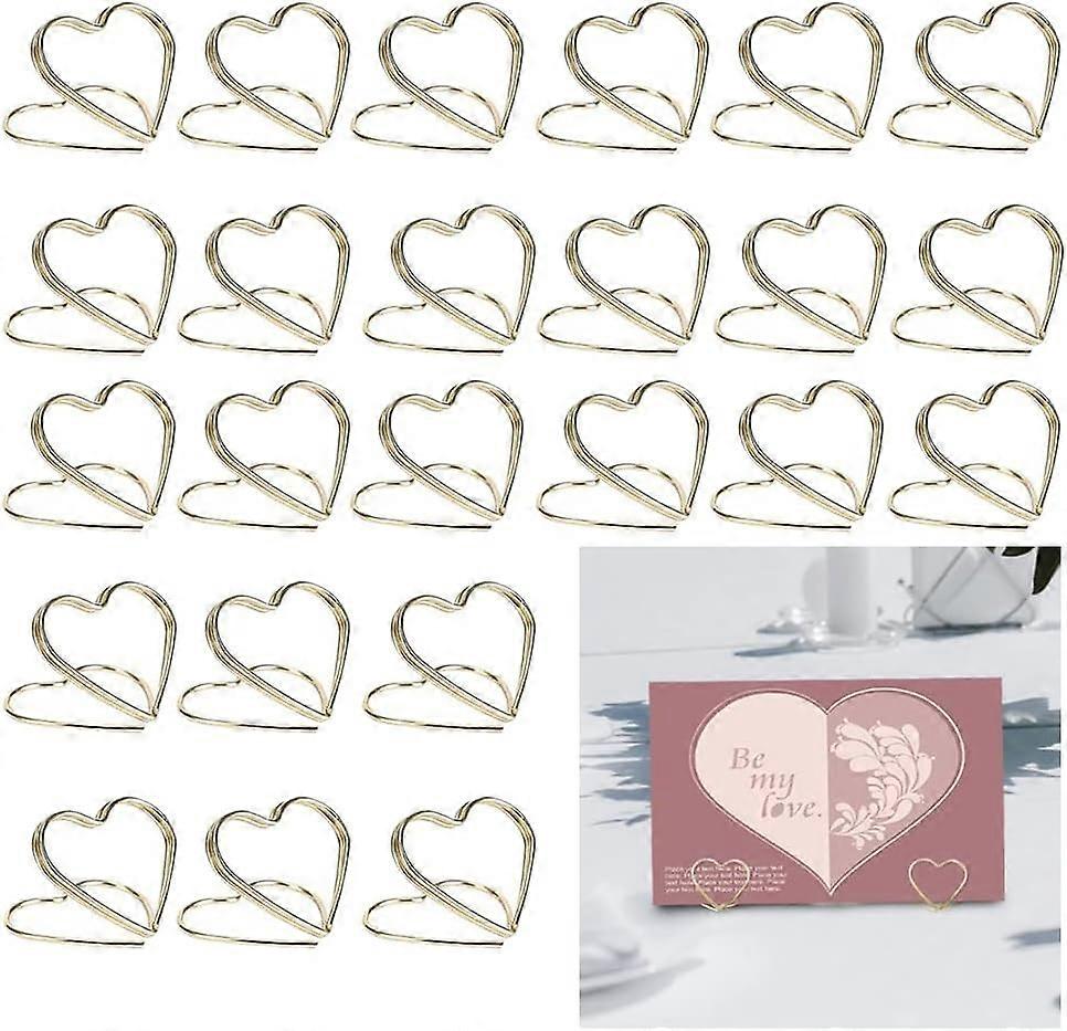 Heart-shaped metal card holder made of high-quality metal, the surface is chrome-plated, scratch-resistant and not easy to rust, break or deform, safe to use, smooth and comfortable to touch. Allows you to use them for a long time. 24-pack Heart-Shaped Card Holders - The metal table number holder has a heart-shaped design, cute and elegant, beautiful and eye-catching. 24 photo clips are enough for your daily needs. Suitable for 4\" x 6\" photos, can be used as table number holder, business card holder, photo holder. Stable base: The base of the stand is very stable, not easy to tip over, and can stand firmly on the table, so you can use it with confidence. An easy way to mark the table setting at receptions such as weddings, banquets, parties, etc. Convenient to display, reserved metal stand can attach the card, the paper will not fall off and it can stick on a wide area. Perfect as a memo, table number, table photo, note, paper, business card clip, menu clips, photos. Table decorations: These wedding table cards are especially suitable for all kinds of activities, and are used to mark places and attach maps. It can be used for Christmas decorations, parties, banquets, restaurants, weddings, offices and cafes. Package includes: 24 metal clips, nothing else!