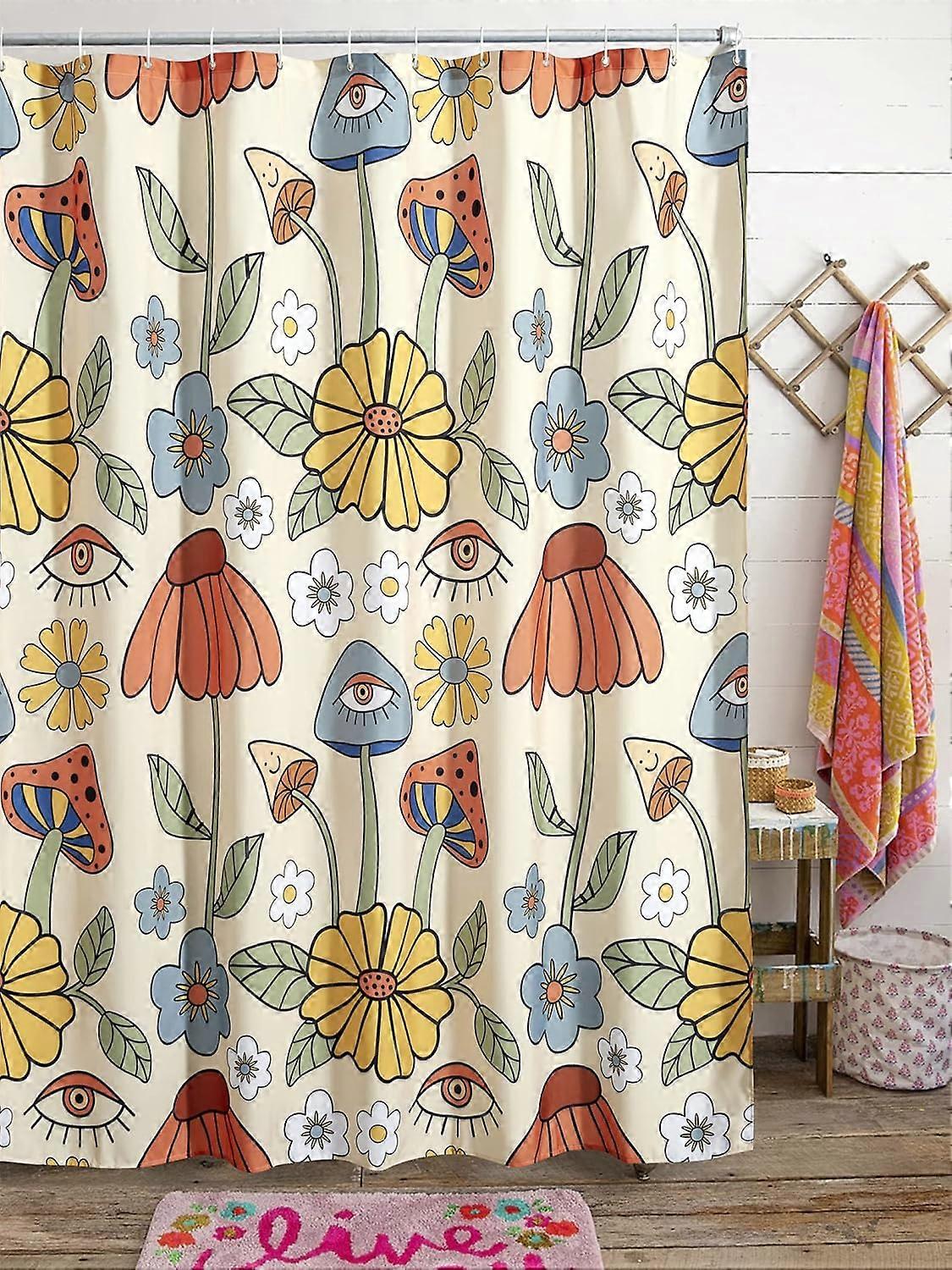 180*180cm retro 70s shower curtain psychedelic floral yellow