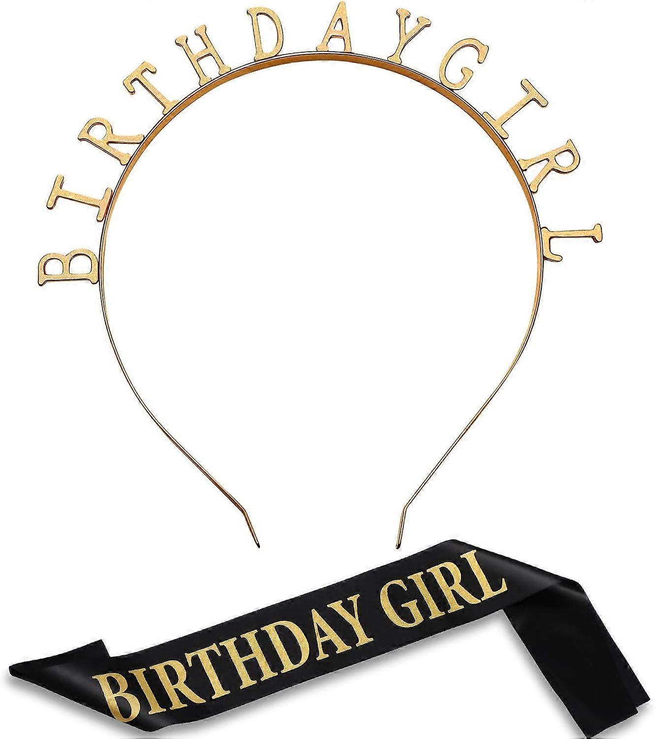 Birthday headdress girl tiara hairband birthday satin sash for party decorations accessories