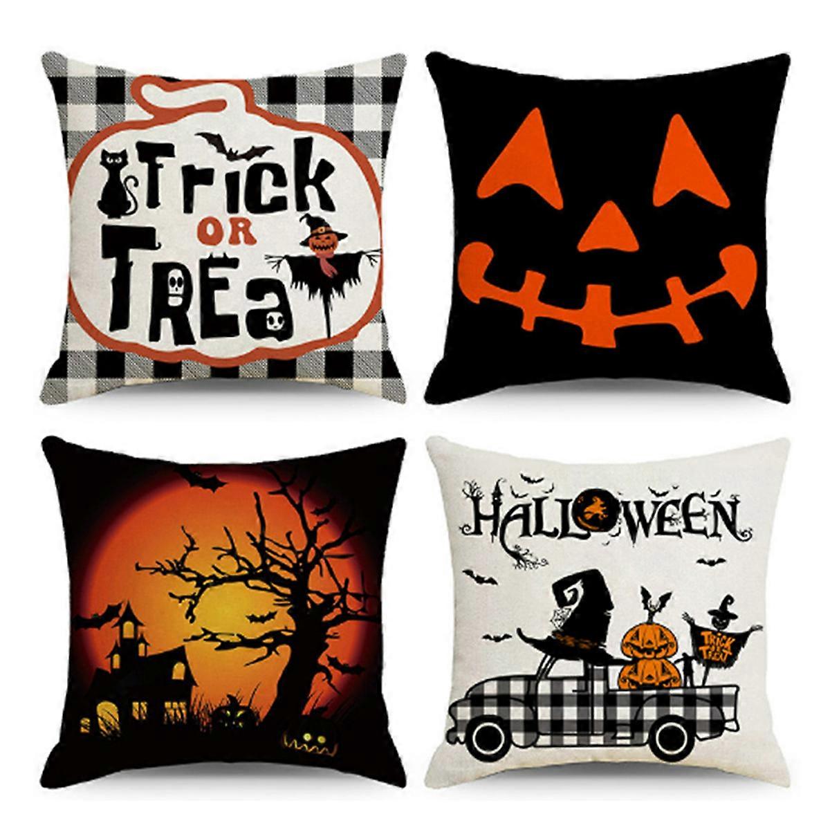 Happy halloween decorative pillow cases 18 x 18 set of 4, trick or treat pumpkin truck porch patio outdoor pillow cases