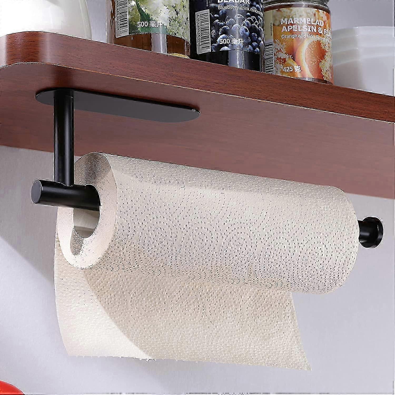 Under Cabinet Kitchen Roll Holder in SUS 304 Stainless Steel Black, Self-Adhesive for Paper Towels